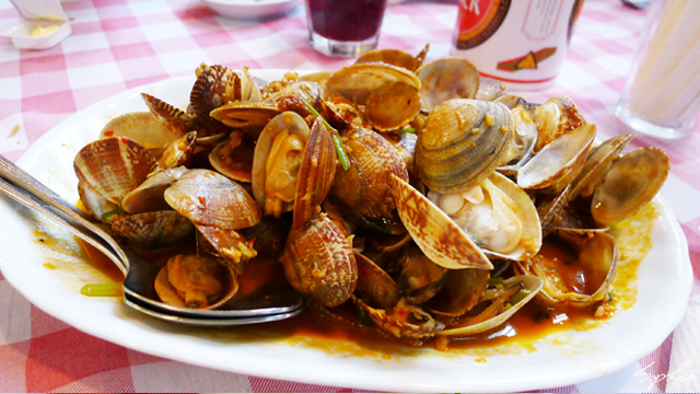 用蛤蠣熬煮出來的醬汁去煎炒的大蝦,不過我覺得這個蝦子吃起來有點粉粉的,不是很好吃。