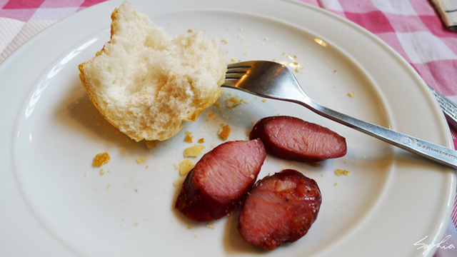 臘腸是在吧台可以點到的菜。我覺得這臘腸吃起來有點鹹,不過同桌的外國人們似乎都很喜歡,尤其是德國人Jana對它讚不絕口。