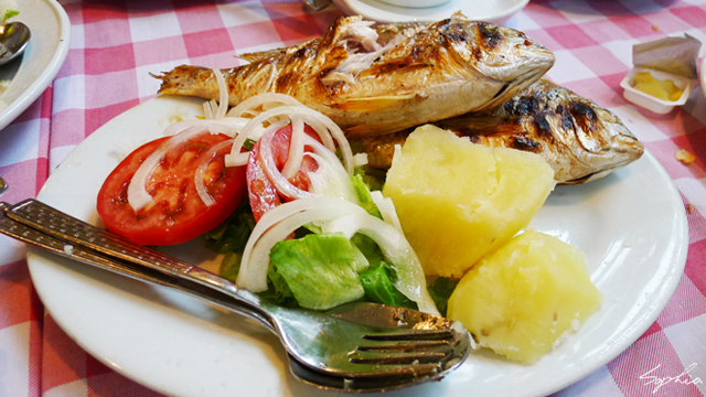 一份燒立魚有兩隻小魚,用粗鹽抹身的魚烤得剛剛好,鮮嫩可口很好吃。