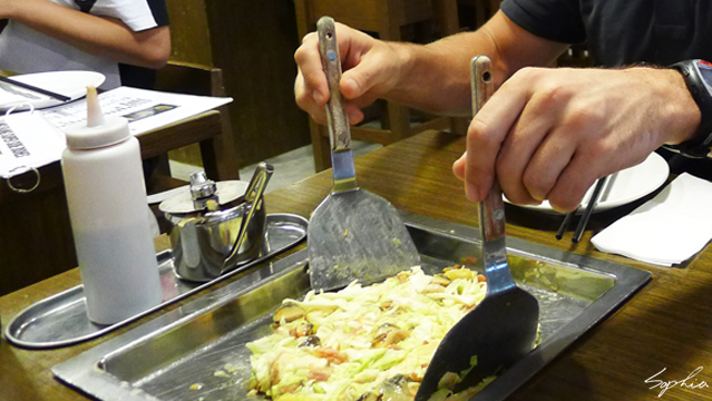 Bang Bang Pan Pang是一間日式大阪燒店,且不是廚師做給你吃,而是可以親自動手做喔! 我一聽到這馬上就興奮起來。這可是漫畫裡才看得到的畫面呢。我想到掰掰演劇社裡的真琴,她家開的就是大阪燒店,所以愛慕真琴的男生會跑到那邊吃一堆大阪燒試圖取悅她 (前陣子回台灣時我複習了掰掰演劇社,剛好看到這段)。