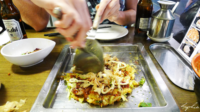 三個口味的大阪燒吃起來,我們最喜歡的是辣味的。咖哩口味吃不太出咖哩味,而原味的味道較清淡,而辣味的辣度很剛好,很好吃。以後可能點原味跟辣味就好了。