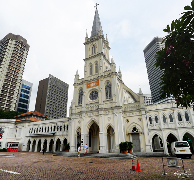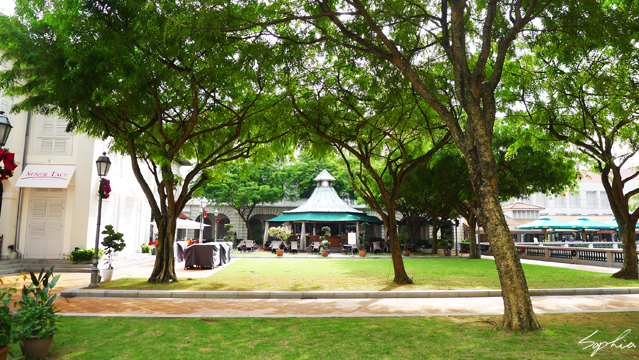 新加坡的行政區有不少名勝古跡,而距離萊佛士酒店不遠處,也有一個著名的觀光景點「贊美廣場」。走到這裡,白色的圍牆沿著街廓圍塑著,突然讓我有種到了中正紀念堂的感覺。