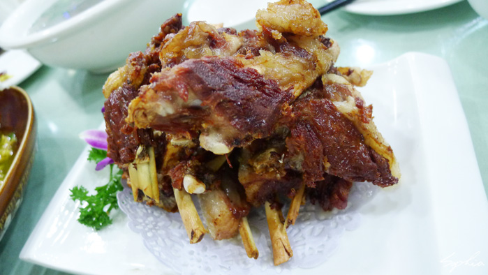 好大的一盤羊排到最後才上桌,且把我嚇了一跳。這個羊肋排的肥肉好多,且羊騷味超重,連我這個平常不在意的人都覺得受不了。不過組員的真先生倒是吃的津津有味的。
