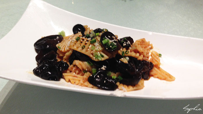 「我覺得麵條有點乾。」我跟真先生說。真先生吃完後,想法不同,覺得這道金線油塔非常好吃。我想我不是貴族,無法了解貴族的口味。