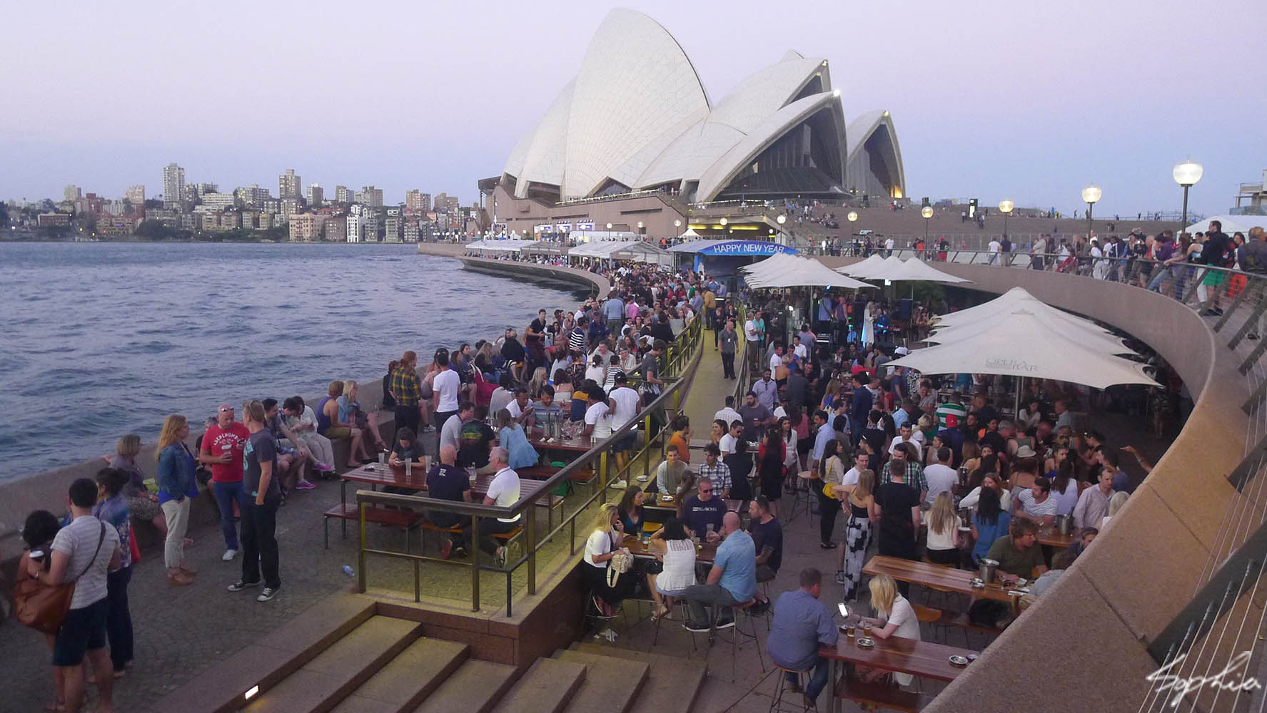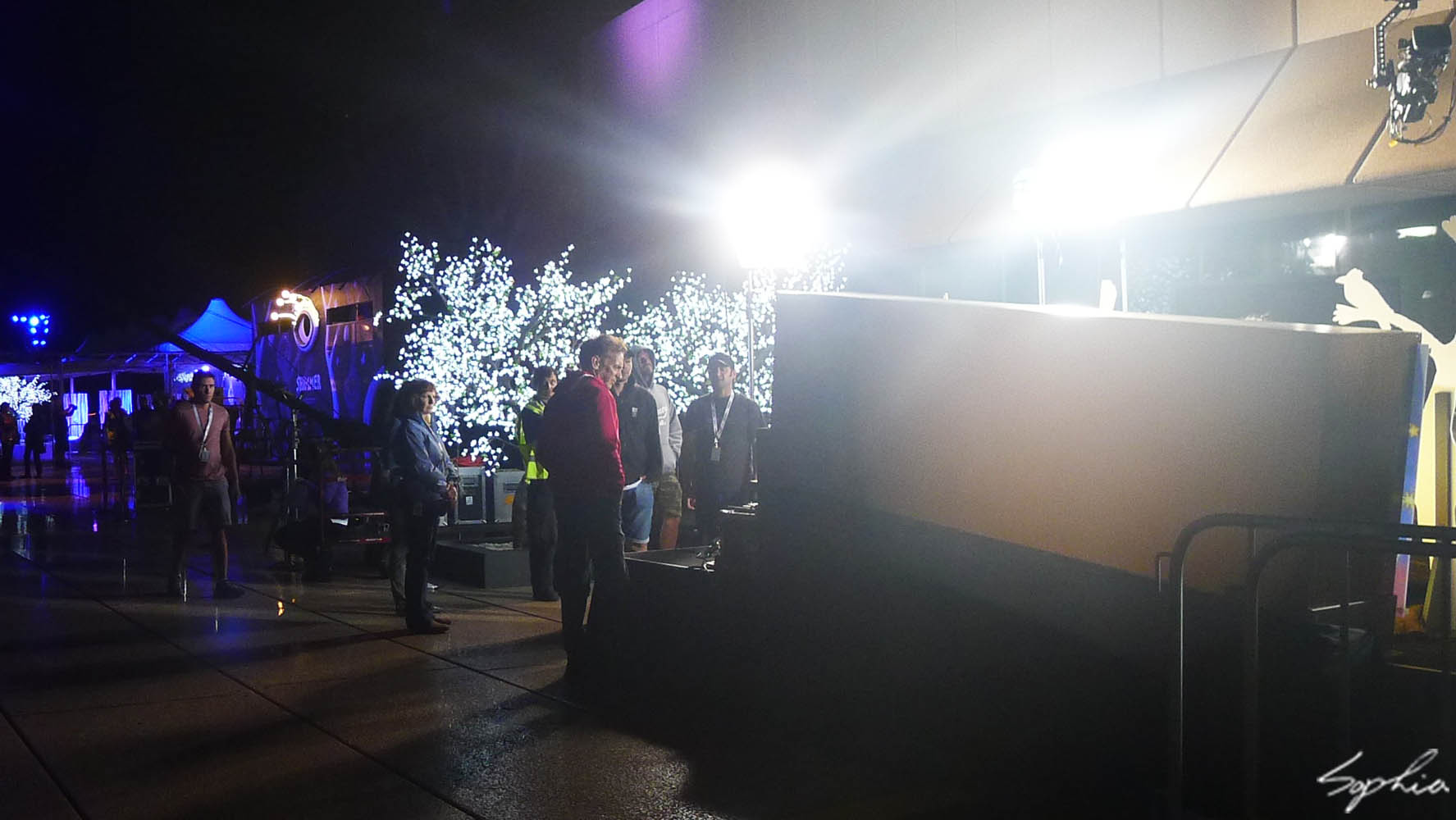 酒喝完了,我們走到歌劇院。明天是跨年夜,所以身為重點表演場地的歌劇院正在緊鑼密鼓地測試燈光效果,還有樂團跟電視台在這裡排練。說到這,我們還沒決定要到哪跨年跟看煙火呢。得趕緊研究才行。