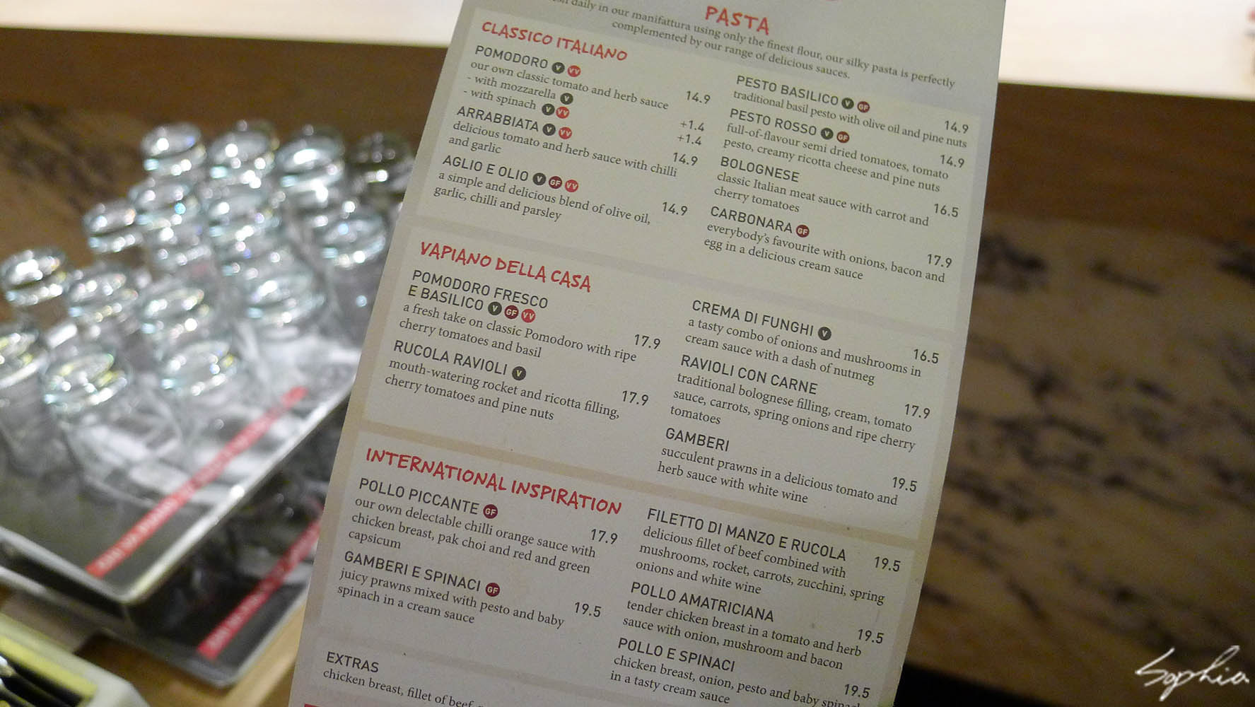 Vapino是義大利餐廳 (我後來才知道是連鎖餐廳,台灣也有),裡頭賣的是傳統義大利餐點比如披薩、義大利麵等餐點,也有前菜小食。