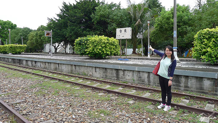 鐵道藝術村的前身是台東舊火車站,他在2001年退休,由台東新站接替工作,而老爺爺般的舊火車站則獃在原處,變身成為有歷史意義,有文化氣息的鐵道藝術村。走在還帶著濕氣的草地上,偶爾踏上鐵軌,兩手舉起保持平衡的走著,我們看著停在一旁動也不動的老式火車車廂、以前人聲沸騰現在卻寧靜無聲的車站月台,彷彿進入了凍結的時空。
