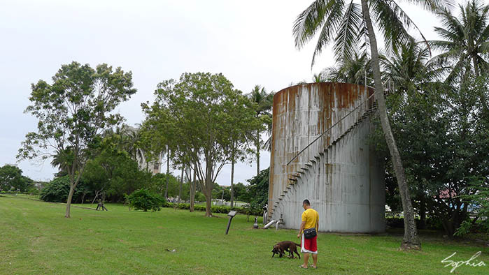 草坪的一方有個陳舊的水塔,是以前火車依然用柴油做燃料時,存油的地方。