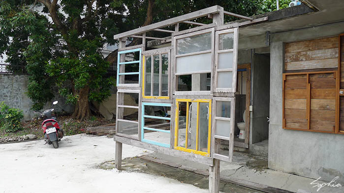 離開皮件店,我們發現倉庫後方有個用老式窗格所做的牆面。真是適合拍寫真照的地方。
