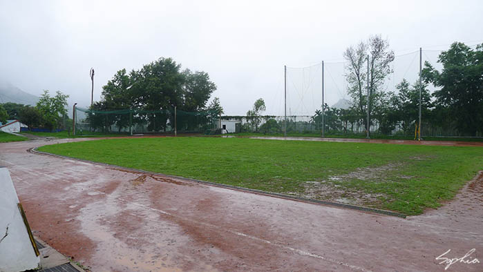 紅葉少棒紀念館不大,我簡單瀏覽後,便推開後門,往外頭走去。外面是紅葉國小的操場,應該也是可以練棒球的地方。不過大雨過後,操場濕漉漉的,一個人都沒有。
