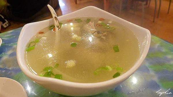 魚湯也很不錯。姜絲湯非常清爽,裡頭的魚肉很多,很好吃,我一連喝了好多碗,讓本來因為淋雨而溼冷的身體都暖起來了。