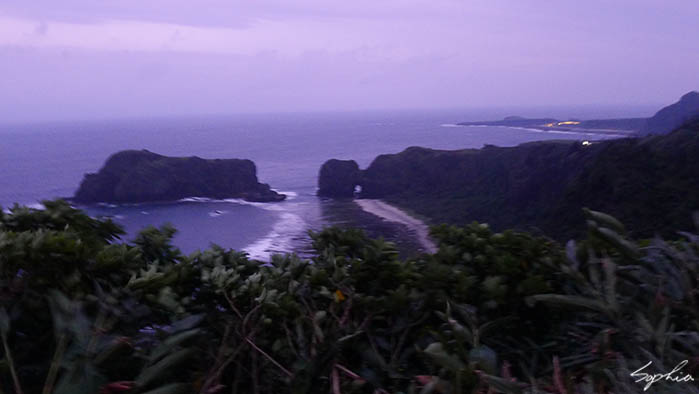 「如果這時候是一群人出來就好了。可以靠彼此的燈照亮路面,且一路嬉鬧也比較不害怕。」我說。我想起當時在暗黑的夜晚,一行人浩浩蕩蕩的前往朝日溫泉的景象。只有兩個人的旅行,在幽暗的島嶼中,現在似乎覺得單薄了些。尤其是當我們騎到某個洞穴前,看著好暗好暗不知道延伸到哪裡的山洞,且洞穴前方有著水瀑,讓我們更加害怕的時候。