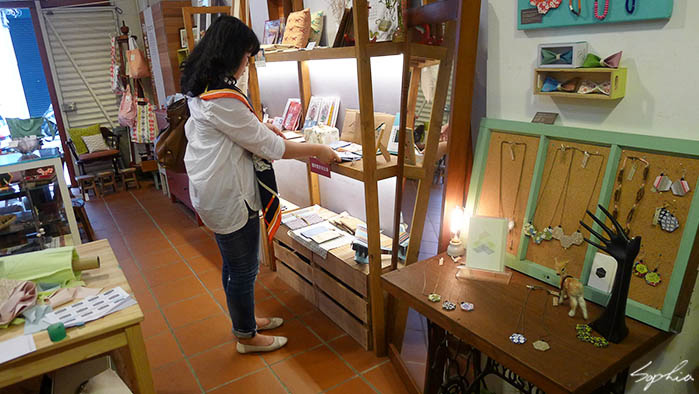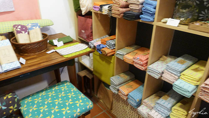 迪化街上有不少布行,而出現在迪化街巷弄裡的這間印花樂,傳承了那樣的歷史與文化,導入年輕氣息,創造出小女生們也會喜歡的漂亮花布。這些花布變成手提包、抱枕、首飾,很有日式雜貨風的感覺。
