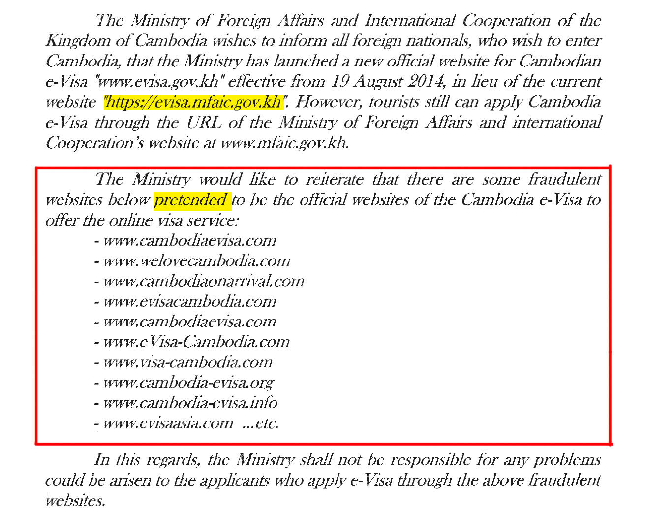 柬埔寨簽證可以辦電子簽證。不過要注意,有很多網站標明可以申請柬埔寨電子簽證,但是卻不是柬埔寨大使館的官方網站。這件事情連柬埔寨的大使館網站都有說明。柬埔寨大使館針對電子簽證出了一張申明信,裡頭寫了只有 "https://evisa.mfillc.gov.kh" 這個網址才是他們的官方電子簽證網站,其他那些看起來名稱很類似的,都只是假裝是官網,而柬埔寨大使館不會對這些網站負責,當然也無法保證這些網站可以幫你辦到簽證。