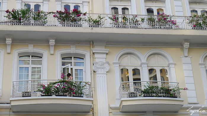 只可惜我是一個人的旅行,所以房費能省則省,沒法住這間很有歷史的法國風旅館。不然,每天早上睡醒後打開法式雙拉門,到陽台喝杯咖啡,看看前方的大劇院,以及同起街上穿梭的車水馬龍,應該很浪漫吧。