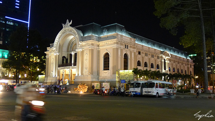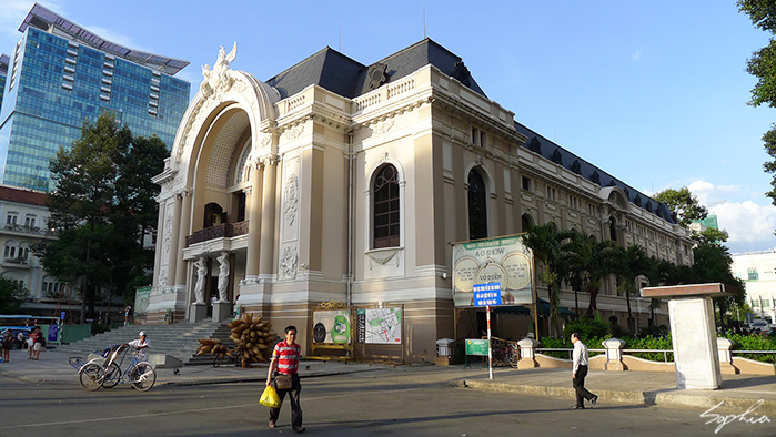 走在同起街沒多久,我遇到了胡志明市大劇院。這座劇院由法國人修建,於1898年動工,1900年落成,建築受法蘭西第三共和國華麗的建築風格影響,是同起街上的顯眼地標物。