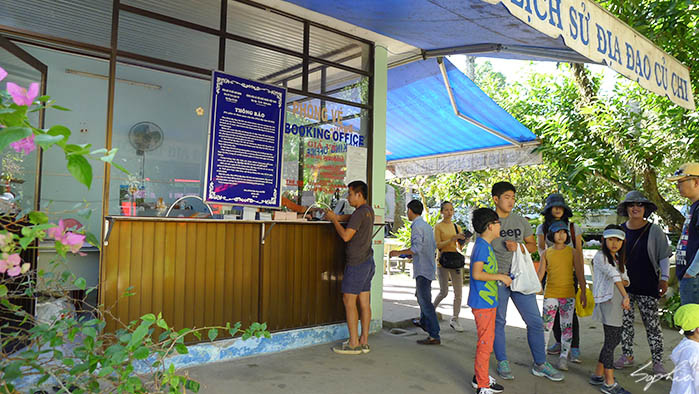 抵達古芝隧道後,導遊到入口處去購買門票 (我瞄了一下窗口,價格果然是90,000盾,代表旅行社沒有趁機坑錢),隨即帶著團員進入古芝隧道園區。