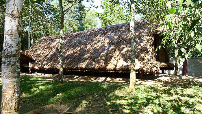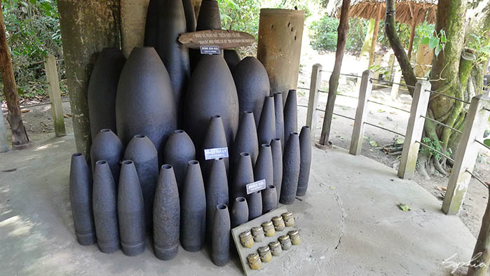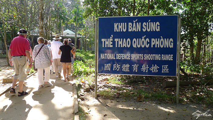 古芝隧道園區其實不位於古芝,而是在距離古芝30公里的地方。這個區域在越戰時期是解放陣營的基地,當時的解放軍為了應付美軍的空襲以及投放枯葉劑的攻擊,便挖掘地道來進行游擊戰。這些在地底蜿蜒,有著複雜結構的隧道總長達250公里,非常驚人。越軍們在隧道中鑽動著,時而像地鼠一樣冒出來襲擊美軍,時而在隧道中走動或是躲藏,美軍即使知道這些隧道的存在,卻怎麼都無法掌握隧道的結構。或是說美軍太大隻了,很難鑽進小小的隧道,所以無法破解吧。總之,古芝隧道區域一直到最後越戰結束,都保持良好的戰績,從沒被美軍攻陷,而有了鐵三角的稱號。