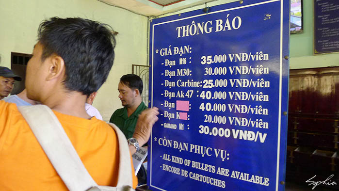 射槍是額外收費的活動。設槍時間有十分鐘 (還是十五分鐘? 我忘了),收費方式按使用槍支的種類來計算,比如卡賓槍 (Carbine,輕型半自動步槍) 是25,000盾,AK47則比較貴,要40,000盾。這樣的價錢大約等於港幣十塊十五塊,美金一塊兩塊錢,其實挺便宜的,所以不少人立刻掏出錢包,拿了槍支到射擊場去玩。只可惜我對於射擊沒太大興趣,且震耳欲聾的槍聲加上炎熱的天氣中搞得我很煩躁,所以沒下去玩。
