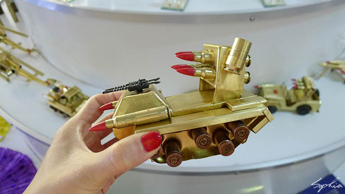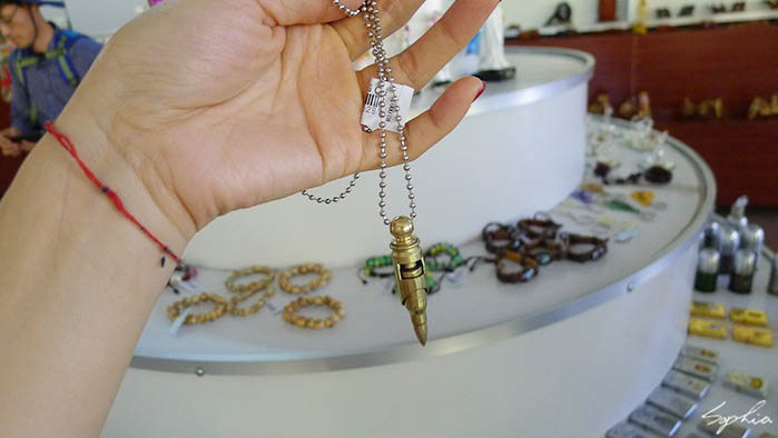 不玩射擊的話要幹嘛呢? 導遊說要在這裡待十幾分鐘誒。那逛逛禮品店好了。射擊區旁邊是禮品店,裡頭有越軍穿的衣服或是帽子,也有用子彈做成的裝飾品比如子彈坦克,子彈項鍊等。