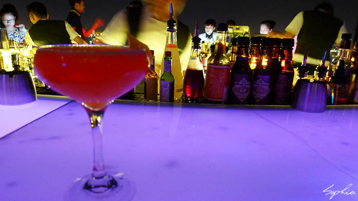 看了一會兒夜景,也拍了不少照片後,我拿著酒杯,到靠近牆邊的某個碗形小桌旁,站在那裡一邊有一口沒一口的啜著酒,一邊看手機裡頭的照片,回憶今天所走過的地方。享受一個人寧靜的時間沒多久就被某個陌生男子給打斷了。