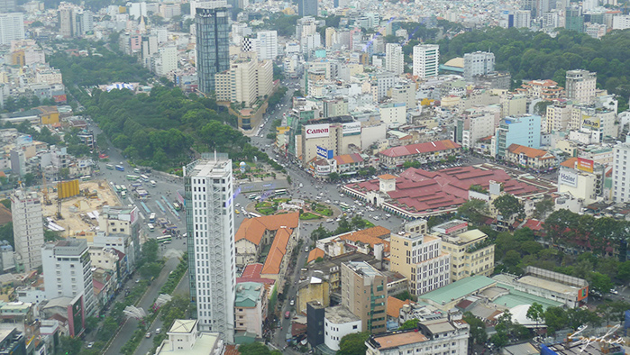 濱城市場的會成為地標,可能跟它的位置有關係。第一郡是胡志明市的經濟、貿易、金融、行政中心,而濱城市場位在第一郡的中心位置,其前方的圓環更是不少花園大道比如黎利街 (Le Loi) 和咸宜大道 (Ham Nghi) 交錯或是起點的地方,四通八達,交通繁忙,也難怪濱城市場總有一種車水馬龍的感覺。