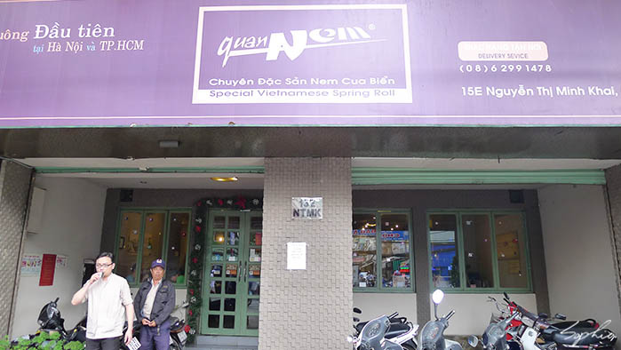 因此,當我離開熱鬧的胡志明市市區,快要到第一郡的邊界,試圖尋找Quan Nem,這間號稱來自河內的老字號的餐廳時,也以為會看到那樣的餐廳。沒想到,Quan Nem有著大大的店面,以及很新穎的店面招牌,一點都沒有我想像的角落老店家的模樣呢。