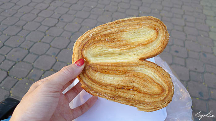 Pat' a Chou的蝴蝶餅好大一片,比我的手掌還大呢。Pat' a Chou的蝴蝶餅酥酥脆脆的,有好多層次,輕輕咬下去,香香甜甜的味道便在我的嘴裡散開。好好吃噢。雖然一邊吃會一邊掉餅乾屑屑,但我還是一口接一口地吃,停不下來。