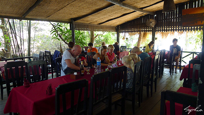 我的司機金林,也總是帶我到這樣的餐廳區吃飯。這些餐廳多半是為了外國觀光客而設立的,環境不錯,可以觀景或是有空調,也可以讓人從炙熱的天氣中小小解脫一下,並同時品嚐道地的柬埔寨美食,挺不錯的。這天,逛完變身塔,時間到了用餐時間,金林便帶我到離變身塔不遠處的餐廳區,並選擇了其中一間 「朗度安哥餐廳 (Rumdual Angkor Restaurant)」。
