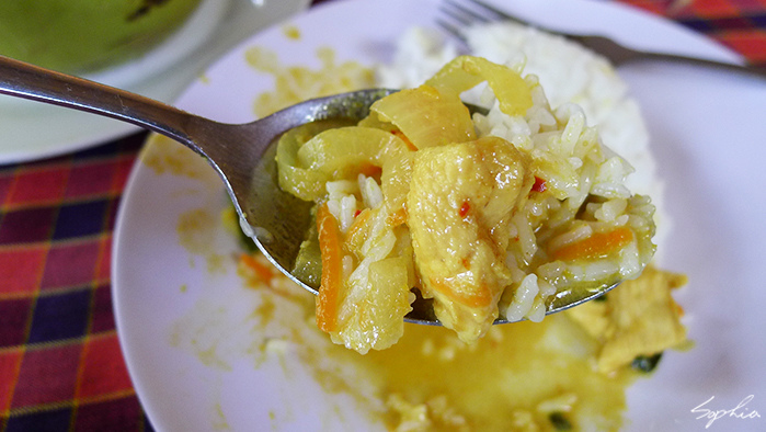 我點的是雞肉 Amok,而裡頭去除雞肉之外,還有洋蔥、紅蘿蔔等蔬菜,很有營養。
