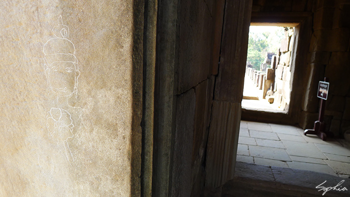 我在一旁的牆面發現一個塗鴉,畫的是佛陀的模樣。在古蹟上塗鴉很可惡,不過撇開這點不談,佛陀塗鴉倒是畫得蠻可愛的。