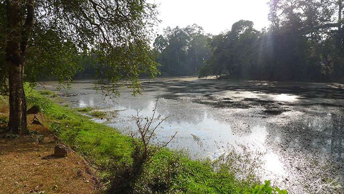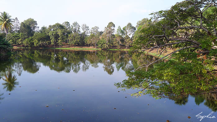 巴孔寺雖然荒廢了一陣子,但是經過法國古蹟維修專家的修補後,已大致恢復原貌。巴孔寺週邊的草地跟樹木們茂密的生長著,烘托著巴孔寺,讓這間古老的寺廟充滿了生命力。真是漂亮。