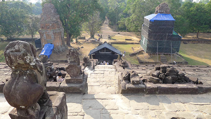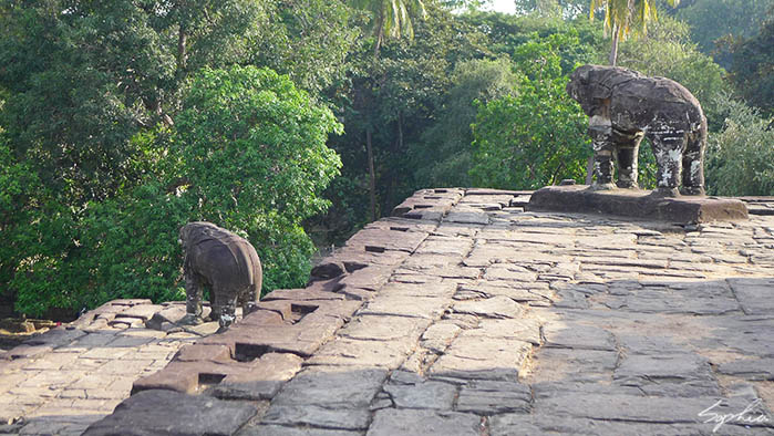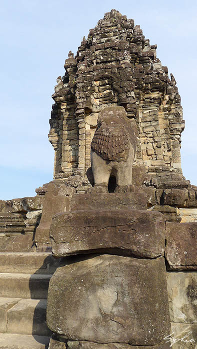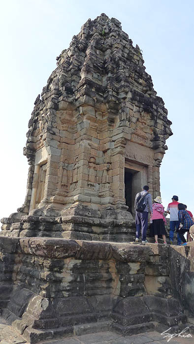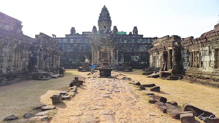 走到巴孔寺前方,我看到了似曾相識的景象。巴孔寺尖塔像是小吳哥的尖塔一樣,而五層金字塔平台像是巴芳寺一樣,金字塔平台的角落站著的大象則如同東美蓬寺一樣。我一邊逛著巴孔寺,一邊回憶著這三天看到的吳哥寺廟。好像在複習這幾天習得的功課似的。