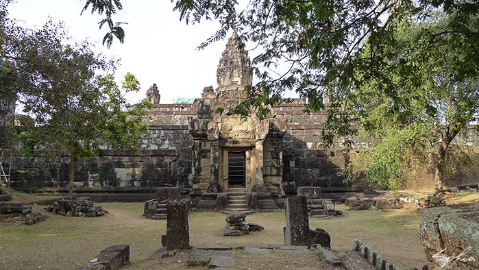 巴孔寺是羅洛士遺跡群中最重要的寺廟,它是因陀羅拔羅一世為吳哥王朝建立的國廟,也是最早的廟山 / 金字塔形寺廟。這間對於後來的吳哥寺廟有絕對影響的寺廟,入口參道旁有著生氣盎然的花草樹木,以及好像湖水般的護城河,熱烈的歡迎拜訪者。