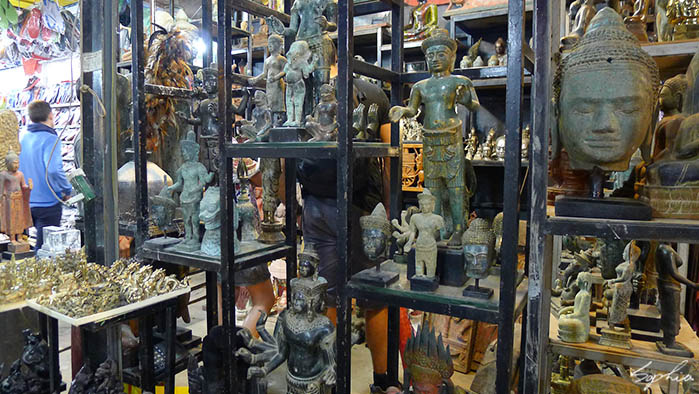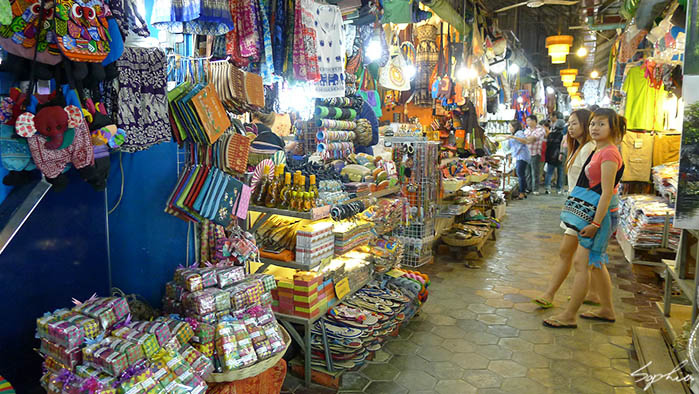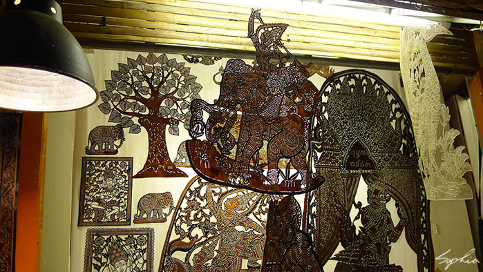 吳哥夜市裡的東西看起來較精緻,價位也較高,必較難大開殺戒。不過這裡有蠻多有看頭的東西,比如我在這裡看到用梭機現場編織傳統布料的歐巴桑,挺有趣的,也看到很精緻漂亮的皮影戲皮雕。這些都是其他市場中看不到的。