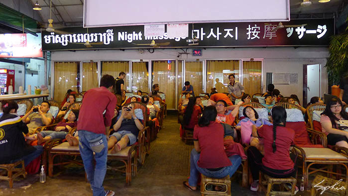 市場外頭可以看到不少按摩攤子,大家直接躺臥在路邊的躺椅上做腳底按摩。這些按摩的價錢很便宜 (十美金一小時之類的),不過前幾天我在酒吧街旁邊的按摩店按了一個讓我心情跟身體都很不舒爽的按摩,知道很容易踩到地雷 (尤其是這種觀光客很多的地方),所以就沒去試了。