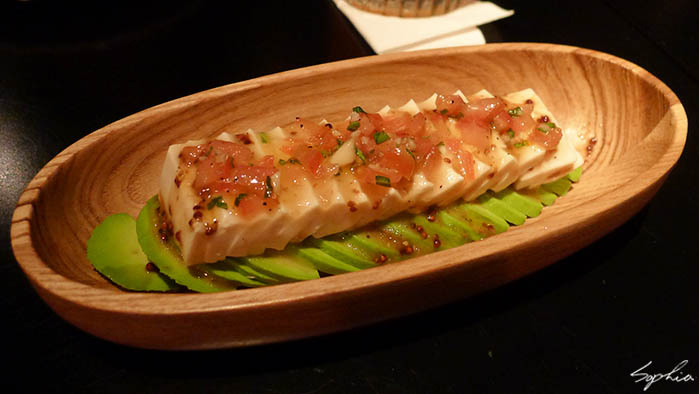 吃了小食,喝了雞尾酒,胃口都開了。這時候,另一位友人也到了,我們便點了好幾樣小菜分著吃,並各自點了主食。這些小菜包含涼菜的牛油果豆腐、鮮蝦紙米捲,吃起來非常清爽,還有一些熱菜比如紅酒燉牛肉、烤時蔬,可以當作吃主食時的配菜。