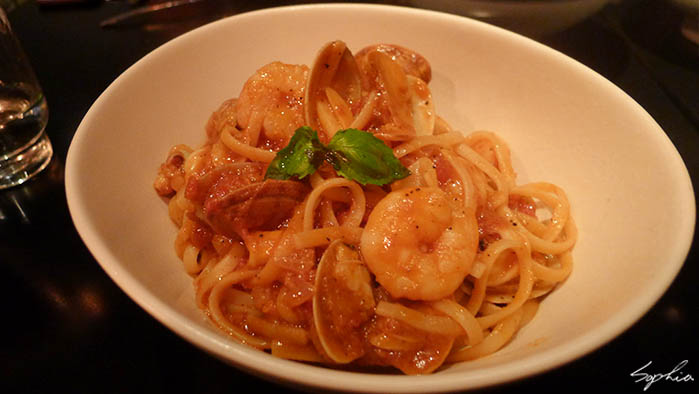 我的主食是有著泰國風味的冬蔭宮義大利麵。基本上這是一個乾的冬蔭宮麵就是了,還蠻好吃的。